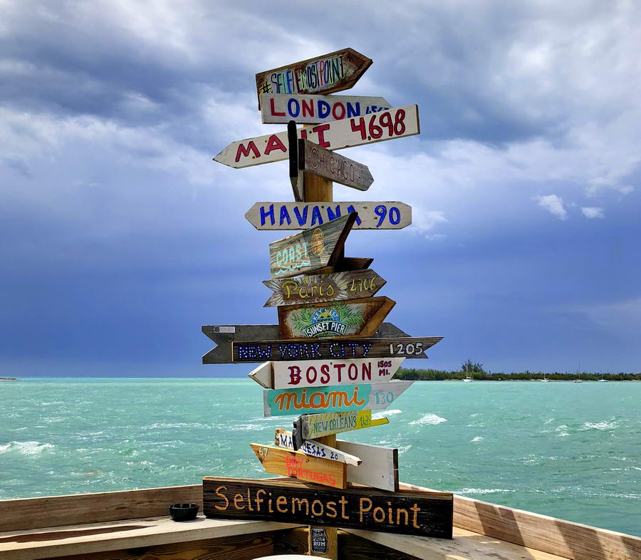 Swoistą przeciwwagą dla najbardziej wysuniętego na południe punktu USA jest… najbardziej odpowiedni do robienia selfie punkt. I nie ma się co dziwić – Selfiemost Point zapiera dech w piersiach, bo jest usytuowany na drewnianym pomoście otoczonym wodą o prawdziwie turkusowym odcieniu. Jego szczególnym elementem jest konstrukcja z tabliczkami, które pokazują, jak daleko znajdują się poszczególne miasta na Ziemi.