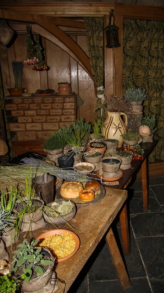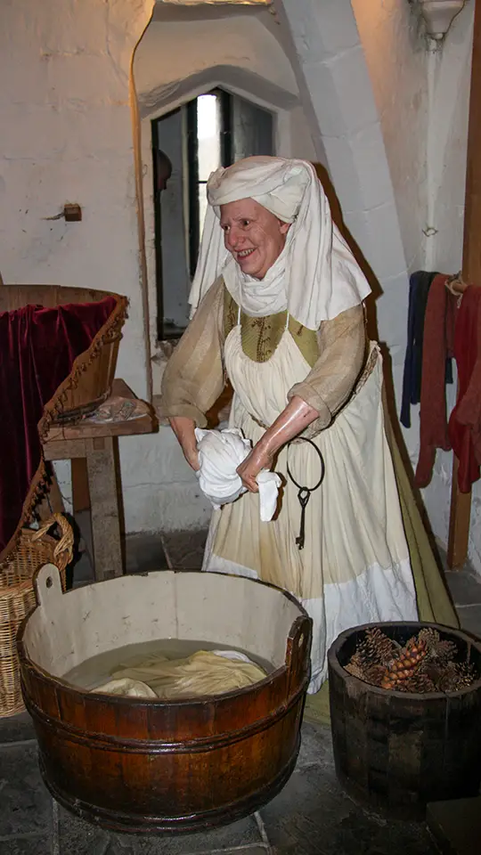Kowale walą tu młotkami w rozgrzane żelazo, praczki i szwaczki wymykały się, chichocząc z objęć chwatkich rycerzy, a ci ostatni robią to, co rycerze robić powinni, gdy akurat nie tłukli się żelazem z innymi rycerzami, pili wino od rana i uganiali się po zamkowych korytarzach za chichoczącymi pannami. Zupełnie jak dziś jedni dobrze się bawią, a inni ciężko pracują. Warto wrócić jeszcze do zamkowej kuchni, która jest olbrzymim pomieszczeniem pełnym mosiężnych garnków i kotłów. Stoi tu kilka palenisk z wielkim rożnem i stoły z drewnianych belek. W ścianach znajdują się przemyślne windy i podajniki dzięki, którym olbrzymie ilości jedzenia każdego dnia trafiały na stoły w salach jadalnych na górze.