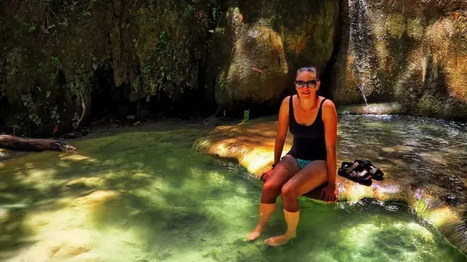 Po drodze spotkać można zwierzaki wszelkiej maści, my natknęliśmy się na olbrzymiego dzika. Była to prawdziwa bestia, która na szczęście jedynie popatrzyła na nas z niechęcią i ruszyła swoją drogą w głąb lasu. Bardzo mnie to zdziwiło, gdyż Magda tego ranka wyglądała niezwykle apetycznie. Następnie gdzieś w kniejach przemknął wielki waran. Pojawiały się i znikały pięknie śpiewające ptaki oraz niezwykłej urody, motyle. Czysta sielanka w bajkowej scenerii, do czasu, gdy dotarliśmy na czwarty wodospad, w którego wodach czaiły się te … potwory, tzn. żarłoczne ryby z rodziny Garra Rufa. W basenie pod wodospadem są ich tysiące i tylko czekają na nieostrożnego wędrowca. Wcale nie przypominają tych malutkich rybek znanych z akwariów w gabinetach kosmetycznych.